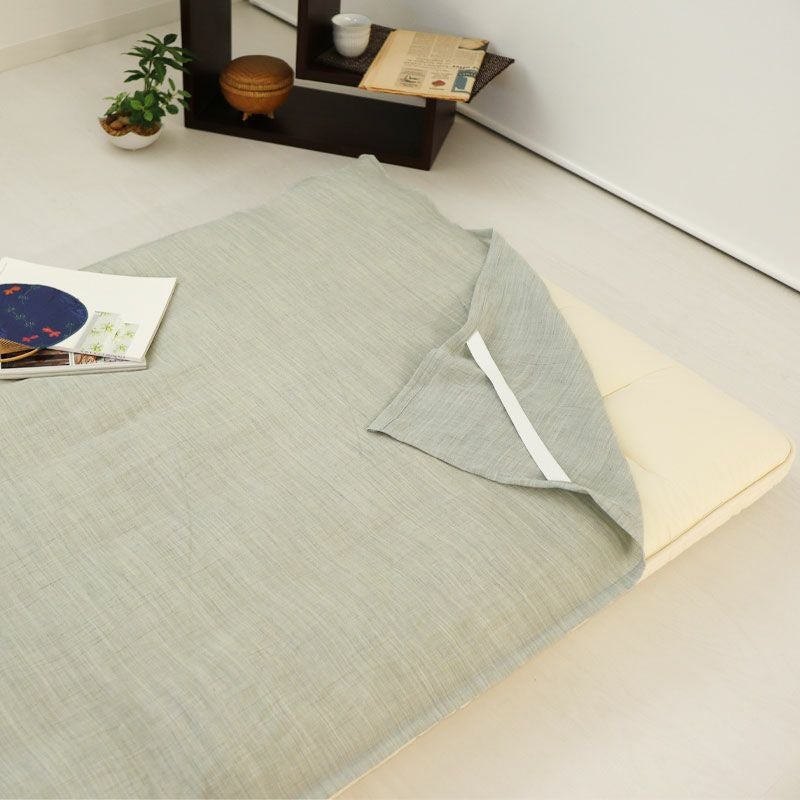 密度を表す数値、スレッドカウントの高い生地がいいというわけではありません。羽毛布団をお使いなのに、スレッドカウントの高い生地を使って羽毛がつぶれたり重すぎて快眠を妨げたりする場合もあります。この道70年以上の実績から生み出された近江ちぢみは夏に最適の軽さと通気性、そして涼感をかねそなえた麻生地になっています。