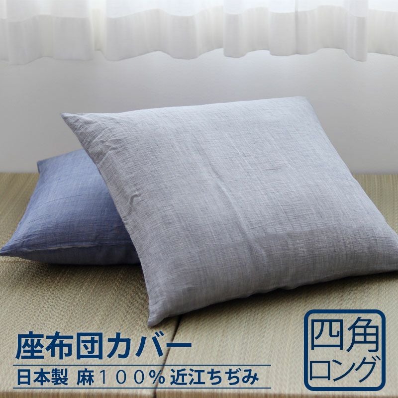 長座布団などの大きなサイズに!麻100%でひんやりと涼しく、汗をかいてもはりつかないので夏でも快適。近江ちぢみ座布団カバー四角形ロング(長座布団)。日本製