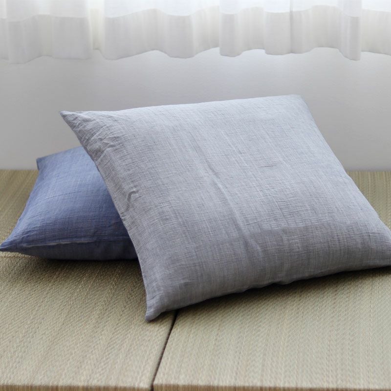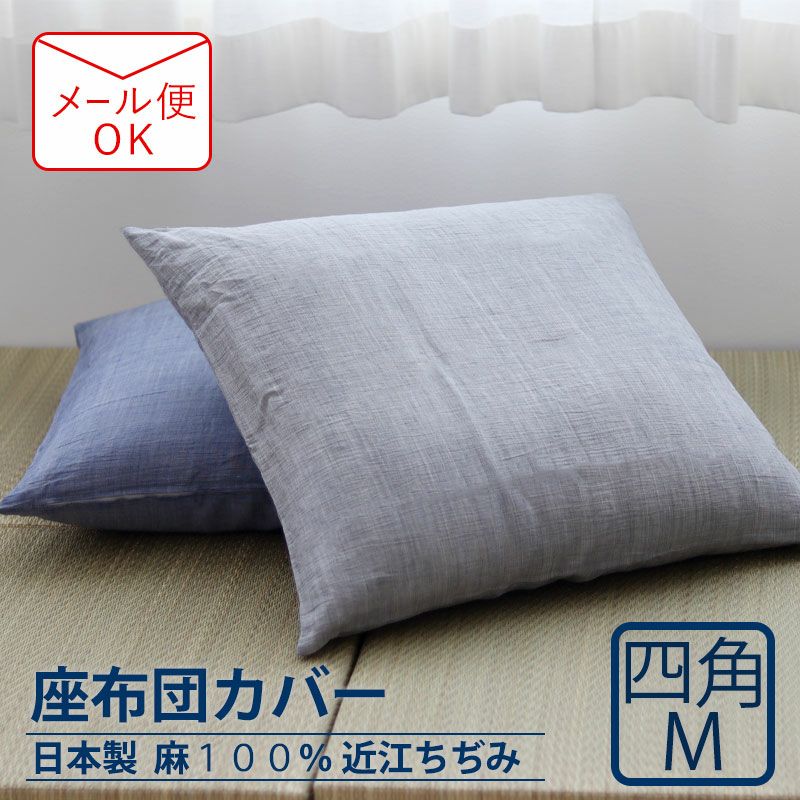 麻100%でひんやり涼しく、シャリ感のある肌触り。シボで肌にはりつかず、落ち着いたカラーバリエーションの近江ちぢみ座布団カバー四角形Mサイズ(小座布団や銘仙判など)。日本製