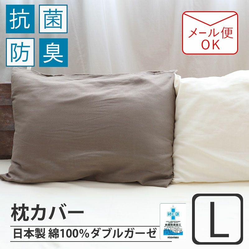オールシーズン快適に清潔にお過ごしいただける抗菌生地のLサイズの枕カバーです。素材にはふんわり柔らかな肌触りが心地良いダブルガーゼで適度に保温性もありながら蒸れにくいのが特徴です。