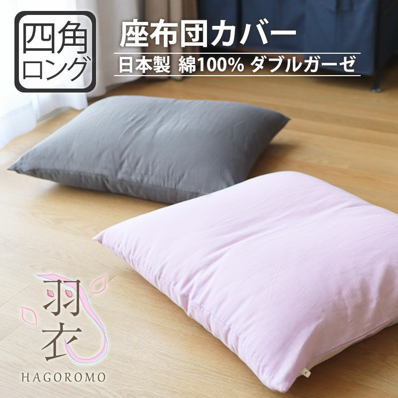 適度な保温性と軽さを両立した、とっても柔らかく肌沿いのよいオーガニックコットンダブルガーゼ、座布団カバー四角形ロングサイズ。