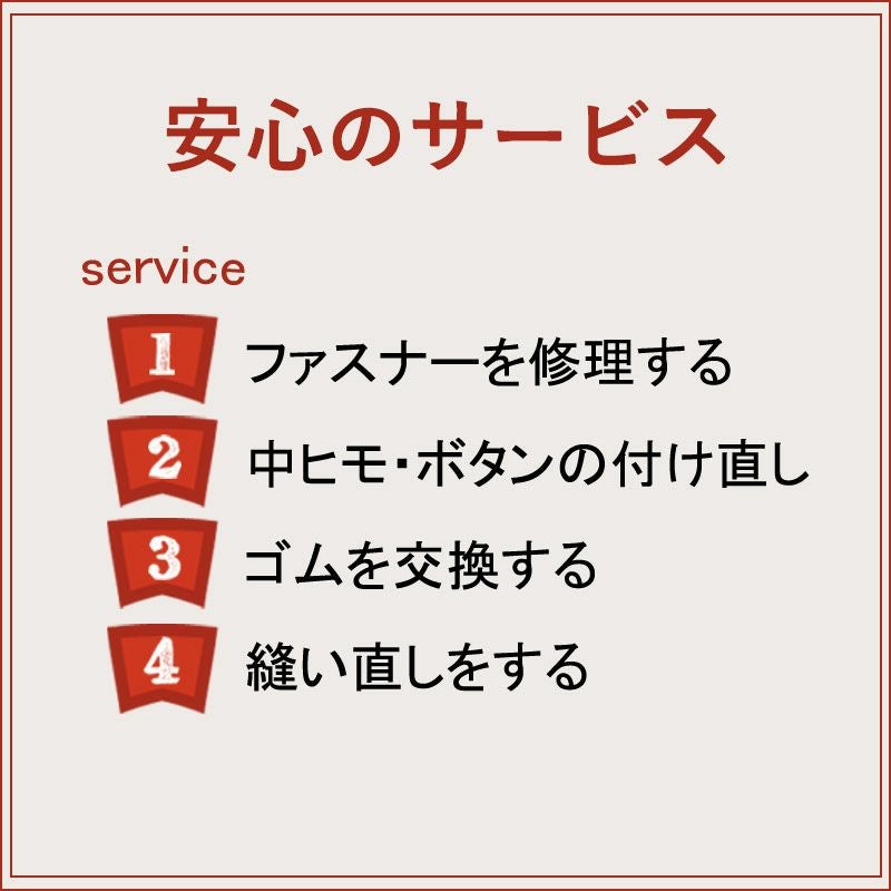- 生地やデザイン、修理内容によって、料金はこの限りではありません