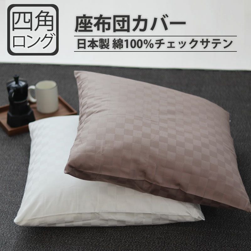 おしゃれなブロックチェック柄の座布団カバーです!昼夜サテンならではの光沢のコントラストが美しく、お部屋を高級感たっぷりに演出してくれます。長座布団など二人掛け用のロングサイズをご用意!