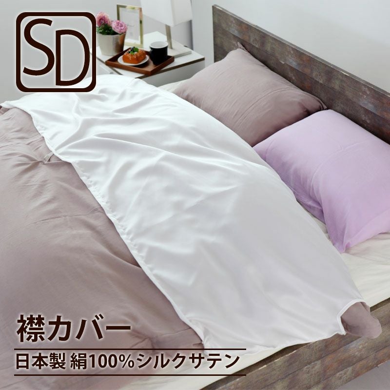 美しい光沢と滑らかな肌触りが気持ち良い超長綿サテンのセミダブルサイズの敷き布団用フラットシーツです。また、オーガニックコットンなので地球環境の負担も少なく、人にも優しい素材です。