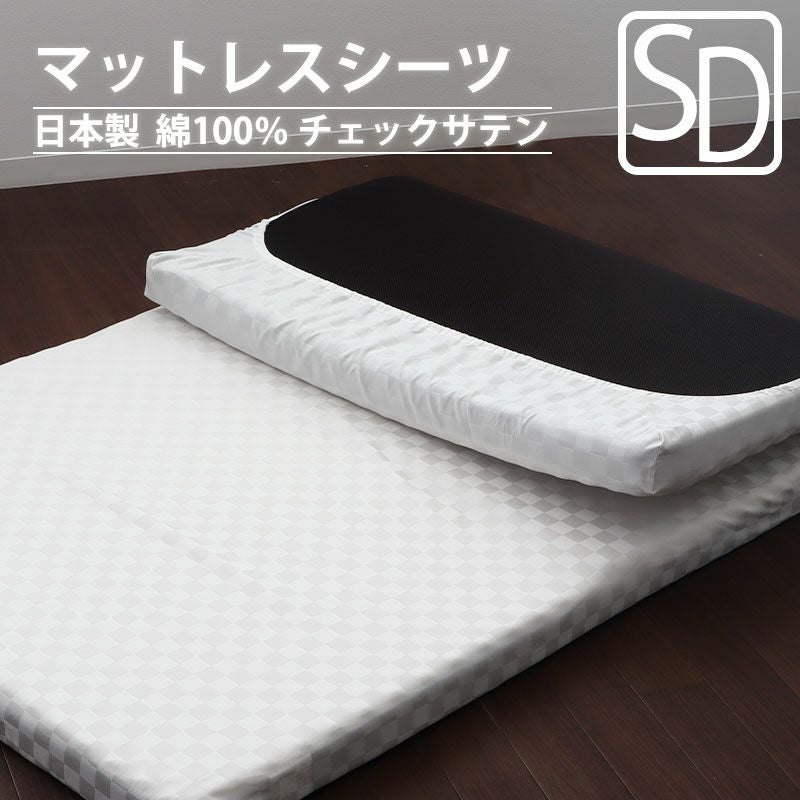 高級サテン地でお作りした、ブレスエアー、トゥルースリーパー、エアーなど人気のマットレスのセミダブルサイズ対応のシーツです!美しい光沢のブロックチェック柄でホテルライクな雰囲気をお楽しみください。