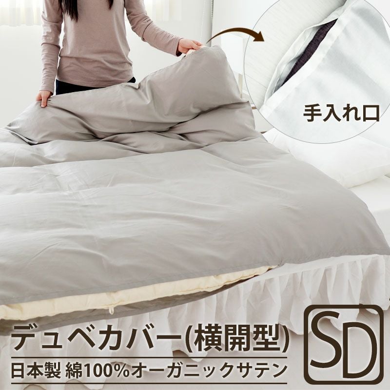 美しい光沢と滑らかな肌触りのインド超長綿サテンのデュベカバー横開型のセミダブルサイズです。世界中のハイブランドも注目する地球環境に配慮したオーガニックコットン100%を使用!安心安全の日本製でサイズオーダー対応。