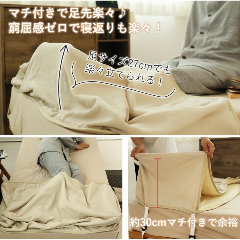 この冬は靴下いらず!ふんわりあたたかい足元ポケットのセミダブルサイズ。お肌に触れる部分は綿100%でふっくら柔らかいコットンボア。寒い冬も足を入れた瞬間あたたかい。