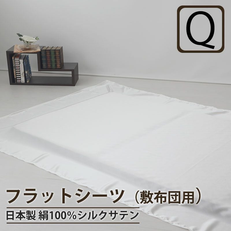 滑らかでスルッととろけるような肌触りのシルク100%サテン生地!高級感のある美しい光沢でエレガントな寝室に。これ一枚でマルチカバーやベッドスローにも使える万能なマットレス用フラットシーツのワイドダブル・クイーンサイズです!1cm単位でサイズ調整可能!