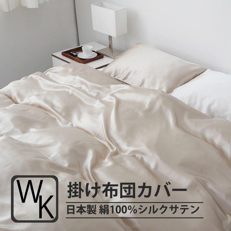 美しい光沢と滑らかな肌触りのインド超長綿サテンの掛け布団カバーのワイドキングサイズです!極細80番手糸で非常に軽いので、大きいサイズの羽毛布団に最適な生地です。高品質な安心安全の日本製です!