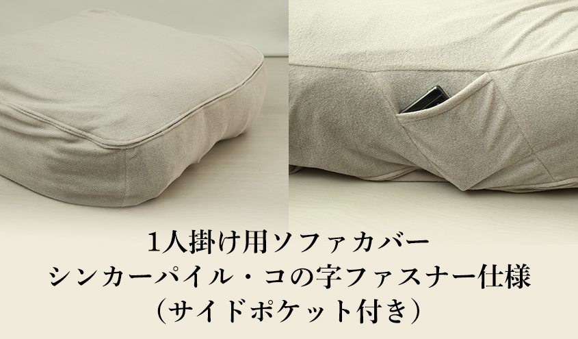 オーダーメイド事例12|1人掛け用ソファカバー シンカーパイル コの字ファスナー仕様サイドポケット付き