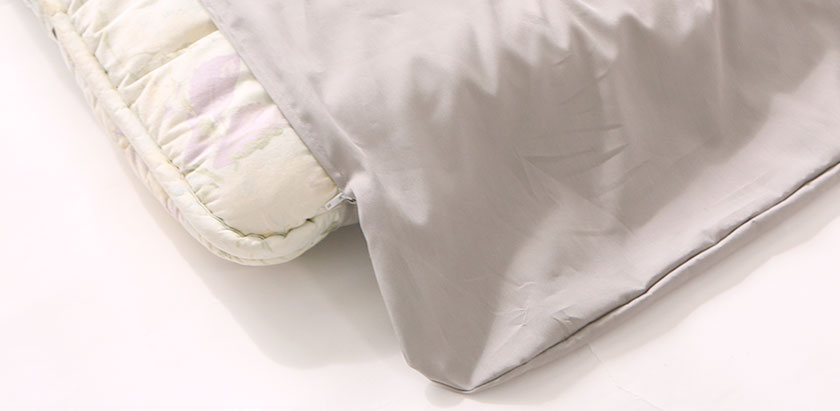 旅館などでみかける、すばやく脱着できる表面が丸く抜いてある丸ぐりタイプや、布団の 柄がみえる表面ネットタイプにかえられます。丸ぐりタイプはファスナーはつきません。 (片側ファスナー以外の仕様を選ばれた場合を除く)