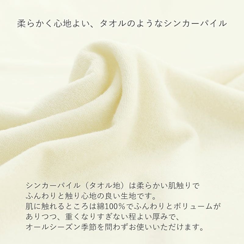 他の画像を見る 年中使えるふわふわタオル地 シンカーパイルマットレスシーツダブルサイズ【オーダーメイド】 春 秋 夏 冬 当店特別価格 ¥ 11,429 税込 商品を見る お気に入りに登録する ふわふわな肌触りのシンカーパイルで、オールシーズン使えるボックスシーツシングルサイズ。